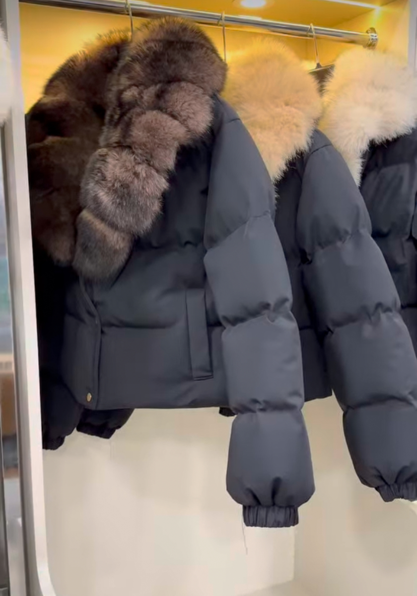 Yeni su geçirmez kumaş, orijinal tilki yaka kombin. Toptan ve perakende.